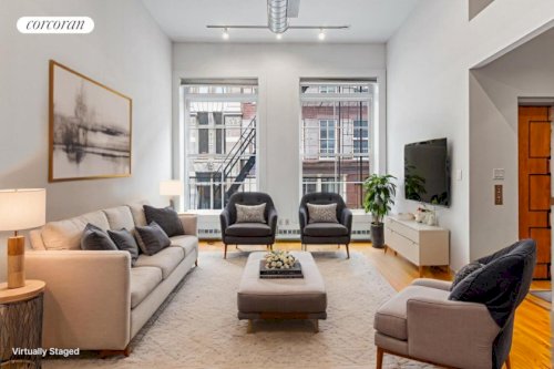 Nestled in the peaceful tree-lined blocks of SoHo, this is a one of a kind opportunity to rent in one of Manhattans most desirable neighborhoods. Apartment number 19 is a one-bedroom home boasting double exposures and a well outfitted chef’s kitchen. The space has been renovated with custom tile and modern stainless shelving throughout. The living room has two large windows that face east and get a great morning light. a of ...